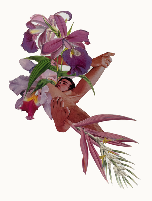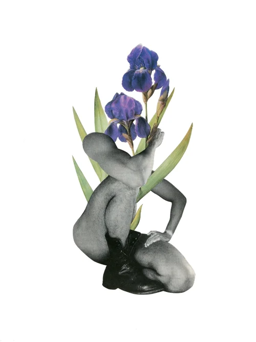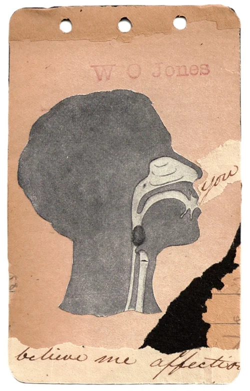 2023, collage on paper with vintage Matt board and digital print, 16” x 20”