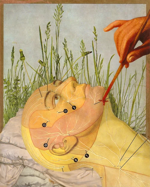 Garden is intended to be a wall-book, an unbound series of images that tell a story as the viewer walks from left to right around the gallery space. Created in 1993-94, this constituted the majority of my first solo exhibit. All pieces are collage on paper, 8 x 10”.